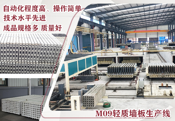 瑪納公司輕質隔墻板生產線設備價格從數十萬到數百萬不等,其中M09型墻板生產線整體技術采用公司自主創新研制開發的新型成組立模技術裝備(系原始技術創新開發,獲得MN級技術鑒定),采用立模法機組流水工藝生產,該線使用瑪納多項技術做支撐,擁有完全的自主知識產權,主要滿足用戶大規劃、高品質、高度機械自動化的產品需要,是現在先進的生產工藝裝備之一。