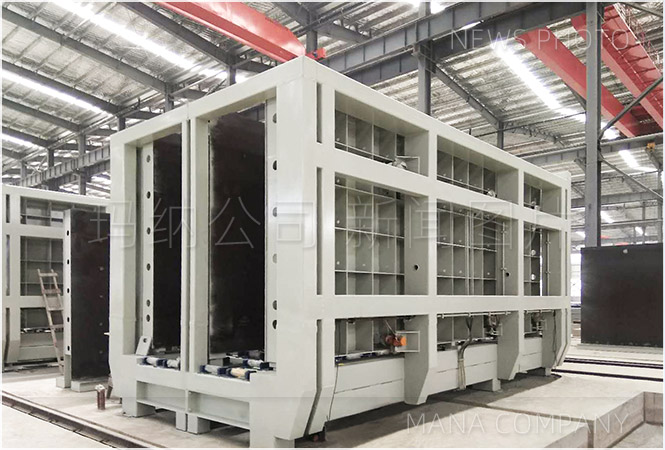 生產線采用成組立模成型技術,采用模塊化控制,實現新型PC大墻板的工業化生產,采用大立模加T型架的子母模技術極大的提高生產效率。采用六面模具成型,部品成型精度高,幾何尺寸準確。