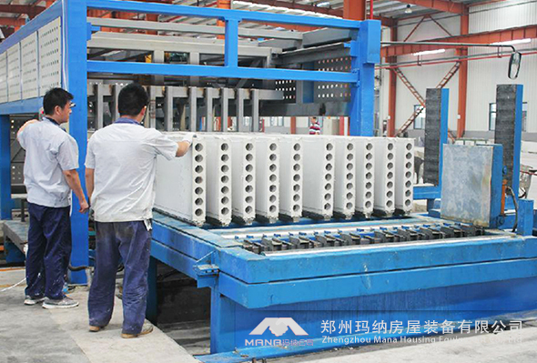 瑪納公司立模墻板設(shè)備生產(chǎn)線是由我公司獨(dú)立研制,擁有完全的自主知識(shí)產(chǎn)權(quán),生產(chǎn)線主要包括7大系統(tǒng):配料攪拌、自動(dòng)注漿、模具成型、穿芯抽芯、轉(zhuǎn)運(yùn)系統(tǒng)、成品養(yǎng)護(hù)、脫模系統(tǒng)。