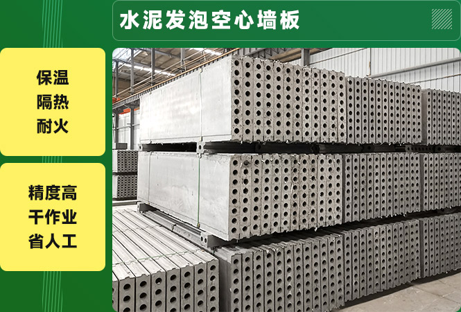 水泥發(fā)泡空心板是以水泥、石灰、硅砂等為主要原料,經(jīng)過高壓蒸汽養(yǎng)護而成的多氣孔混凝土成型板材。水泥發(fā)泡空心板為綠色環(huán)保材料,無有害氣體逸出。其加工制作充分利用了各種工業(yè)廢渣或尾砂,符合建筑業(yè)節(jié)能和可持續(xù)發(fā)展的理念。在現(xiàn)代施工中,使用水泥發(fā)泡空心墻板已成為一種趨勢。
