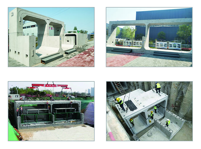 疊合裝配式施工屬裝配化組合施工,實現了規模化生產、輕量化拼裝及綠色施工。有效增加工作面,創造流水作業條件,加快施工進度,減少資源投入,有效降低成本。成型后廊體外觀質量優良,免二次裝修,減少接頭拼接次數,有效提高結構的防水性能。