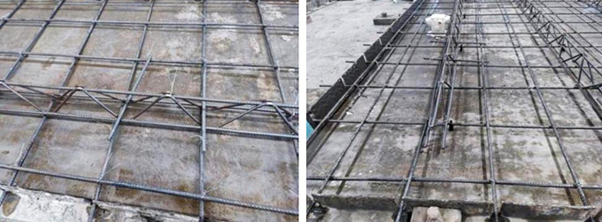 鋼筋綁扎完成后,對吊點,洞口等位置進行加強筋施工。放置鋼筋保護層墊塊。