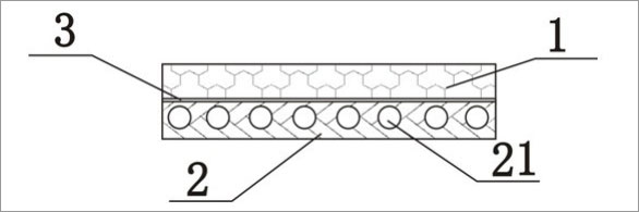 圖中標號:1、保溫板;2、石膏板;3、固體建筑膠;21、圓形通孔。