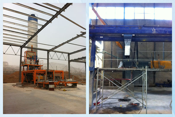 整個過程:配料→攪拌→壓力輸送→澆注入模→上面成型→養護→開模→出板機出板→循環。