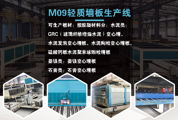 M09輕質墻板生產線可生產板材:GRC空心墻板、水泥發泡空心墻板、水泥陶粒空心墻板、菱鎂空心墻板
