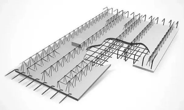 鋼筋桁架薄型高性能混凝土疊合樓板是由鋼筋桁架、1.5-2.5cm預制混凝土底層組成的疊合樓板。施工階段由鋼筋桁架和底部混凝土形成整體支撐體系,承受濕混凝土、施工荷載,無需其他模板支撐,混凝土澆筑完成后鋼筋桁架作為樓板使用階段的受力鋼筋,承受使用階段荷載,底部混凝土界面后期可以直接裝飾裝修。